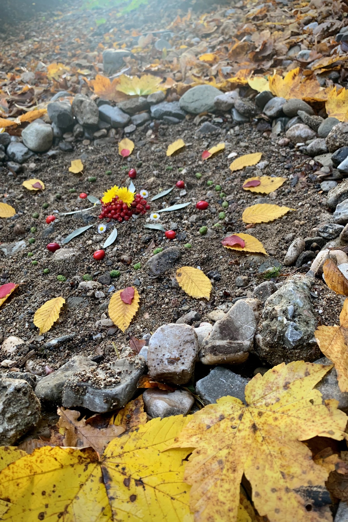Steine, Blüten, Blätter doch auch andere Naturgaben können zu Mandalas gelegt werden. Sie helfen gut sich auf eine Absicht wie z.B. Dankbarkeit zu fokussieren.